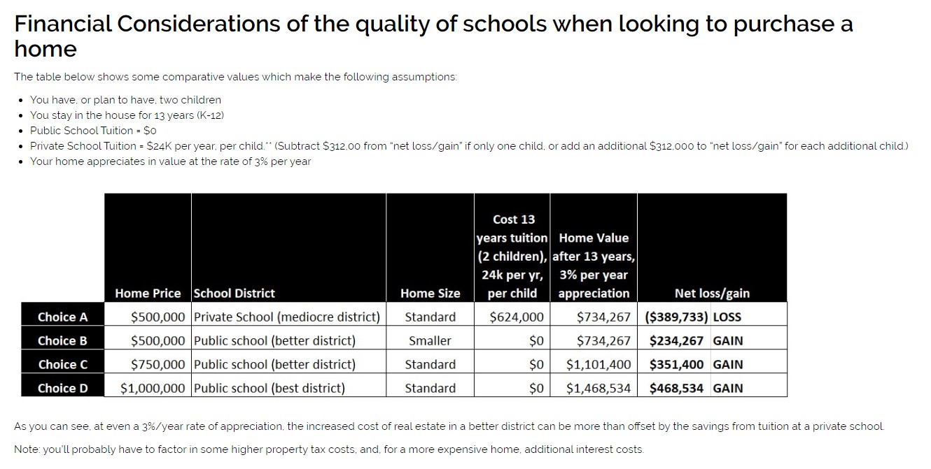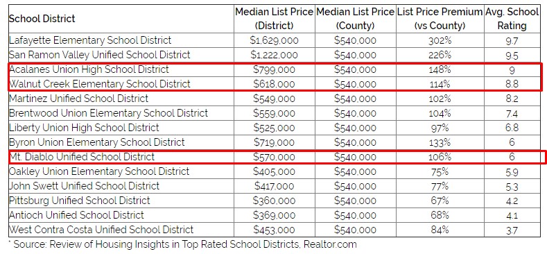 Walnut Creek homes for sale in the best performing school zones can carry a premium cost (click here for an analysis of the price premium for better-performing districts), or here to view the premium you'll pay in Contra Costa's best performing districts. If you have, or plan to have children and education is a priority you may actually save money by avoiding the expense of private schools. Consider a trade-off between amenities/square footage/features and the best performing schools.